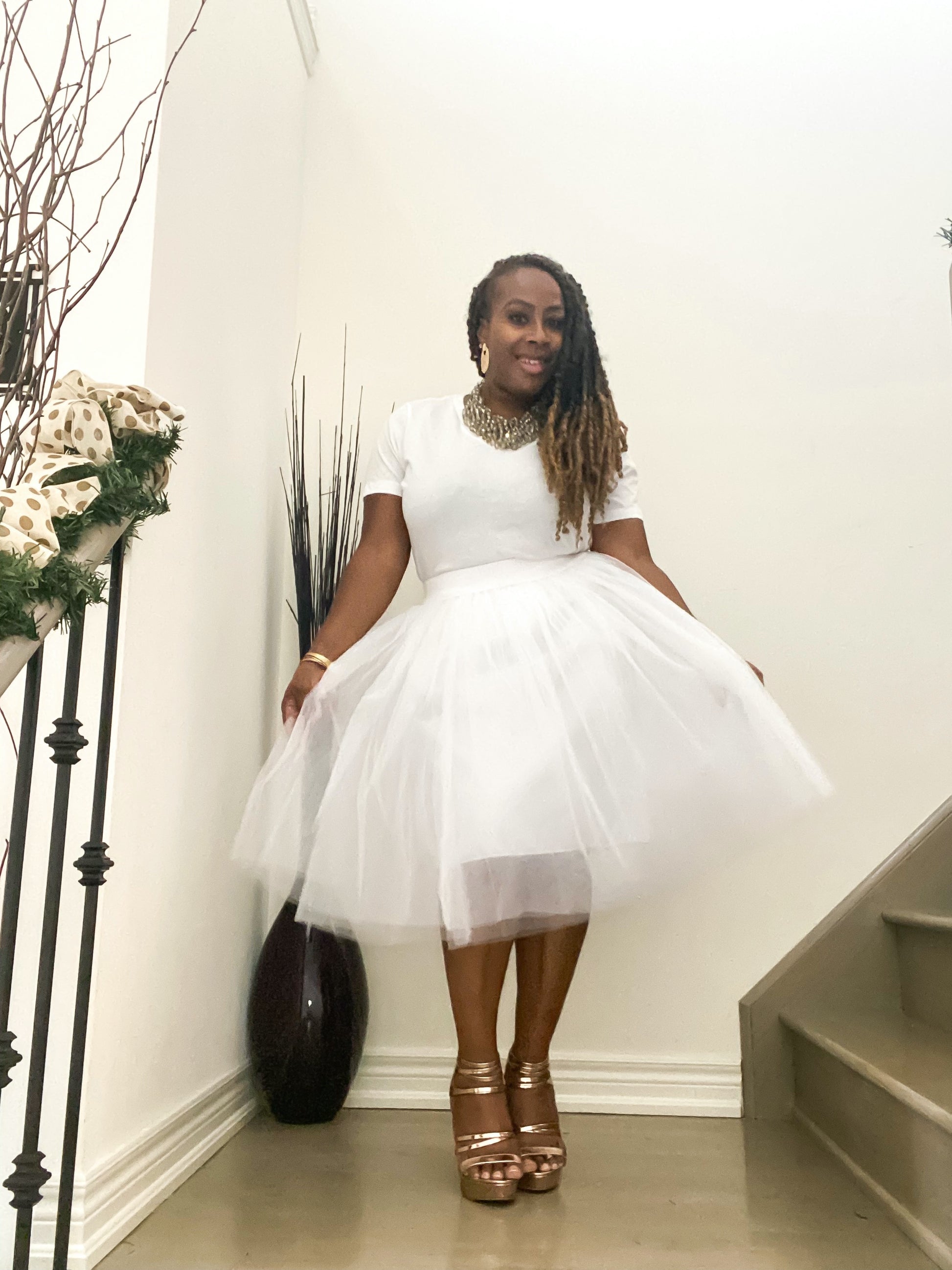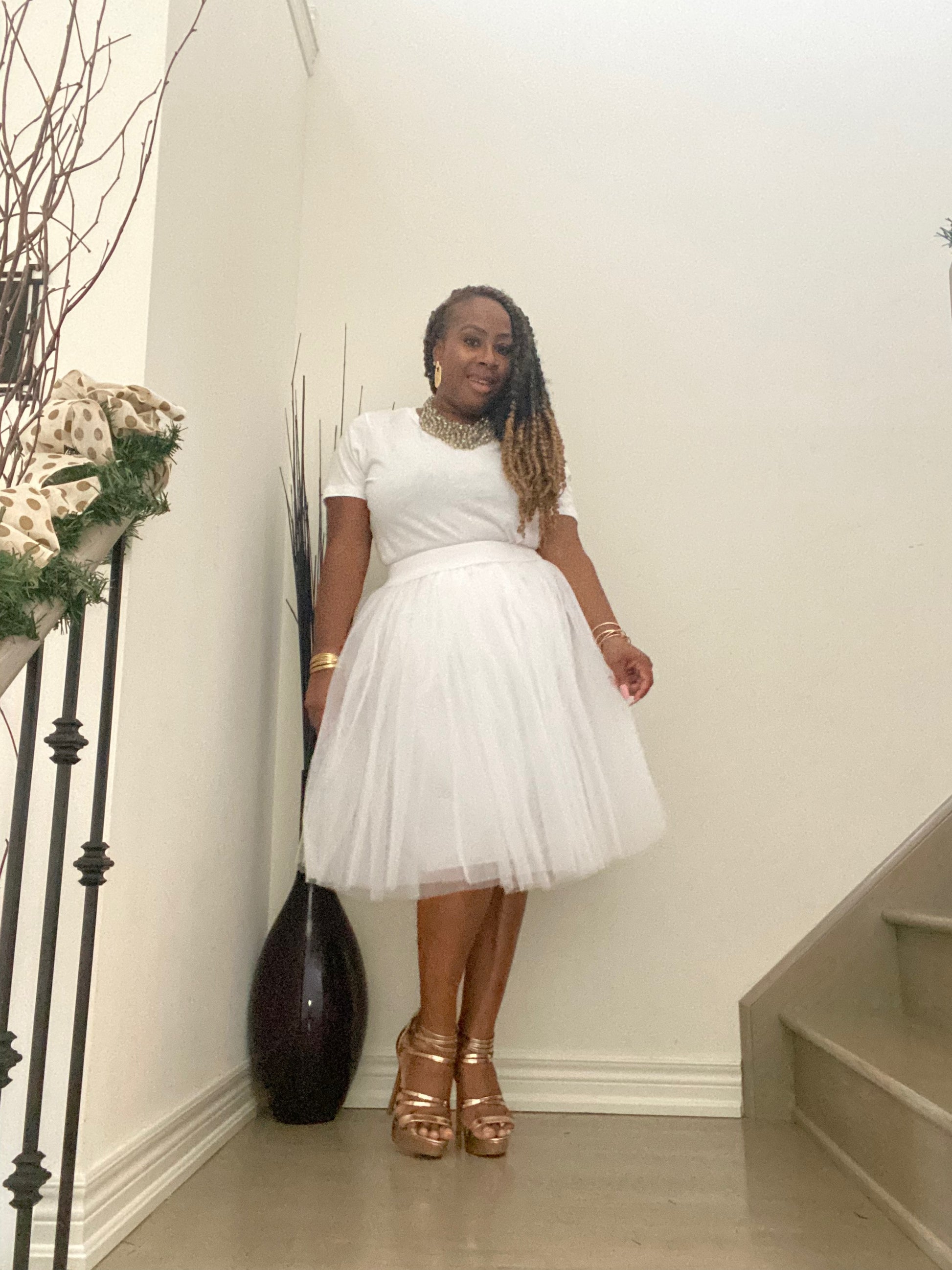 Camille Knee Length Tulle Skirt - White